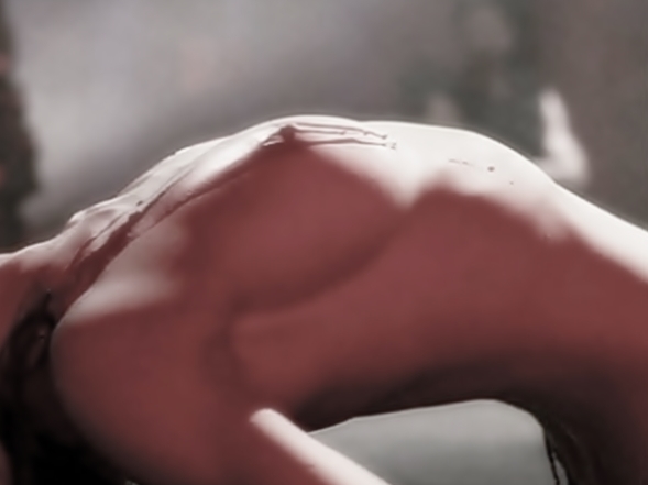 Jessica Biel seen from above as she lies on top of a guy while topless, and then slides off the bed and walks into a bathroom. We then see some other footage of her in bed with the guy. From London.
