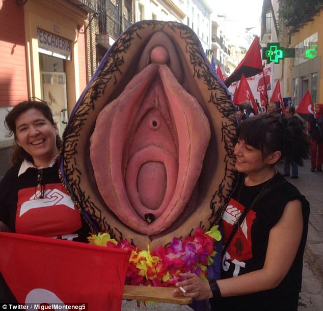 The women marched the two-metre vagina through Sevilla to protest against homophobia, during a workers’ demonstration in May 2014.
