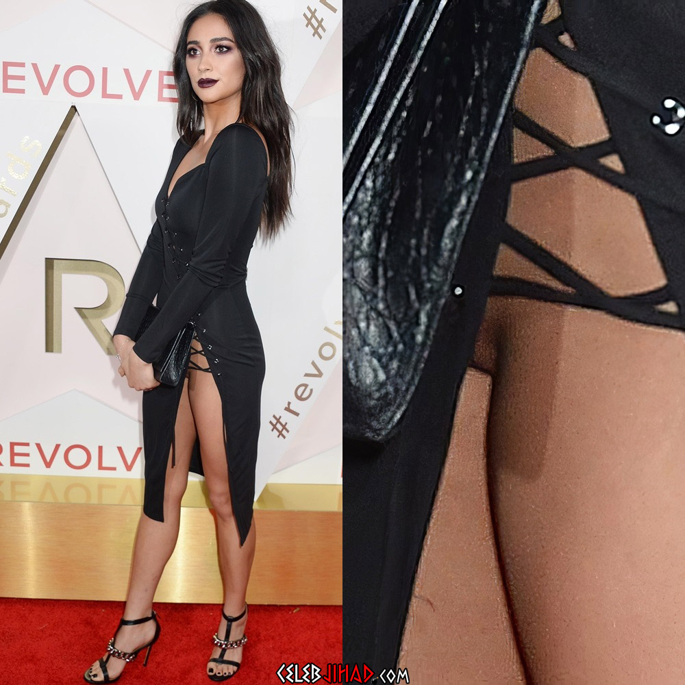 Of course it comes as no surprise to see Shay dangling her piss flaps out the bottom of her panties like this, for this slutty little minx has been trying to show off her dick pocket for years now (as you can see in the “accidental” pantyless upskirt pic below).